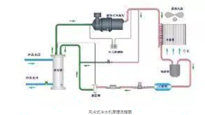 圖(tu)1-風冷式(shi)冷(leng)水機原(yuan)理流(liu)程(cheng)圖(tu):